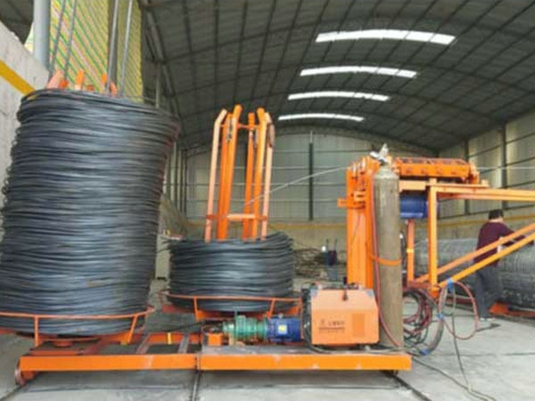 5、繞筋線材經(jīng)過矯直系統(tǒng),由彎曲狀變?yōu)榻街本€,按螺旋狀纏繞在鋼筋籠上,以保證繞筋間距及形狀的完整。