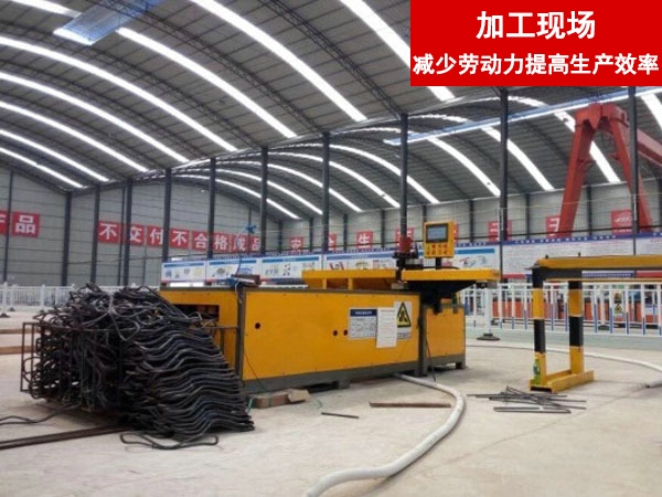 格柵拱架作為隧道拱架的一種常用于公路鐵路隧道,礦山巷道施工的初期支護(hù)中,而 8 字筋是格柵拱架中的重要組成,其形狀復(fù)雜, 數(shù)量巨大,加工難度大,工人勞動(dòng)強(qiáng)度高。濟(jì)寧市旭輝數(shù)控機(jī)械有限公司一直致力于數(shù)控鋼筋彎箍機(jī)的研制,我們針對(duì) 8 字筋的特殊形 狀和要求,在原基礎(chǔ)上加以改進(jìn),讓原本復(fù)雜的加工變得更加簡單、標(biāo)準(zhǔn)、節(jié)能。我們深入加工現(xiàn)場了解傳統(tǒng)加工的諸多難處, 在設(shè)計(jì)當(dāng)中加入現(xiàn)代化制造的先進(jìn)理念和元素,那就是精益化生產(chǎn), 各個(gè)工序的產(chǎn)品沒有堆積(不占地方),產(chǎn)品不需要人力運(yùn)轉(zhuǎn)運(yùn)輸, 讓我們生產(chǎn)的產(chǎn)品意義上的流動(dòng)起來,讓我們的生產(chǎn)現(xiàn)場空間更好的利用,整個(gè)生產(chǎn)線整潔和諧,企業(yè)形象得到根本上的改善。